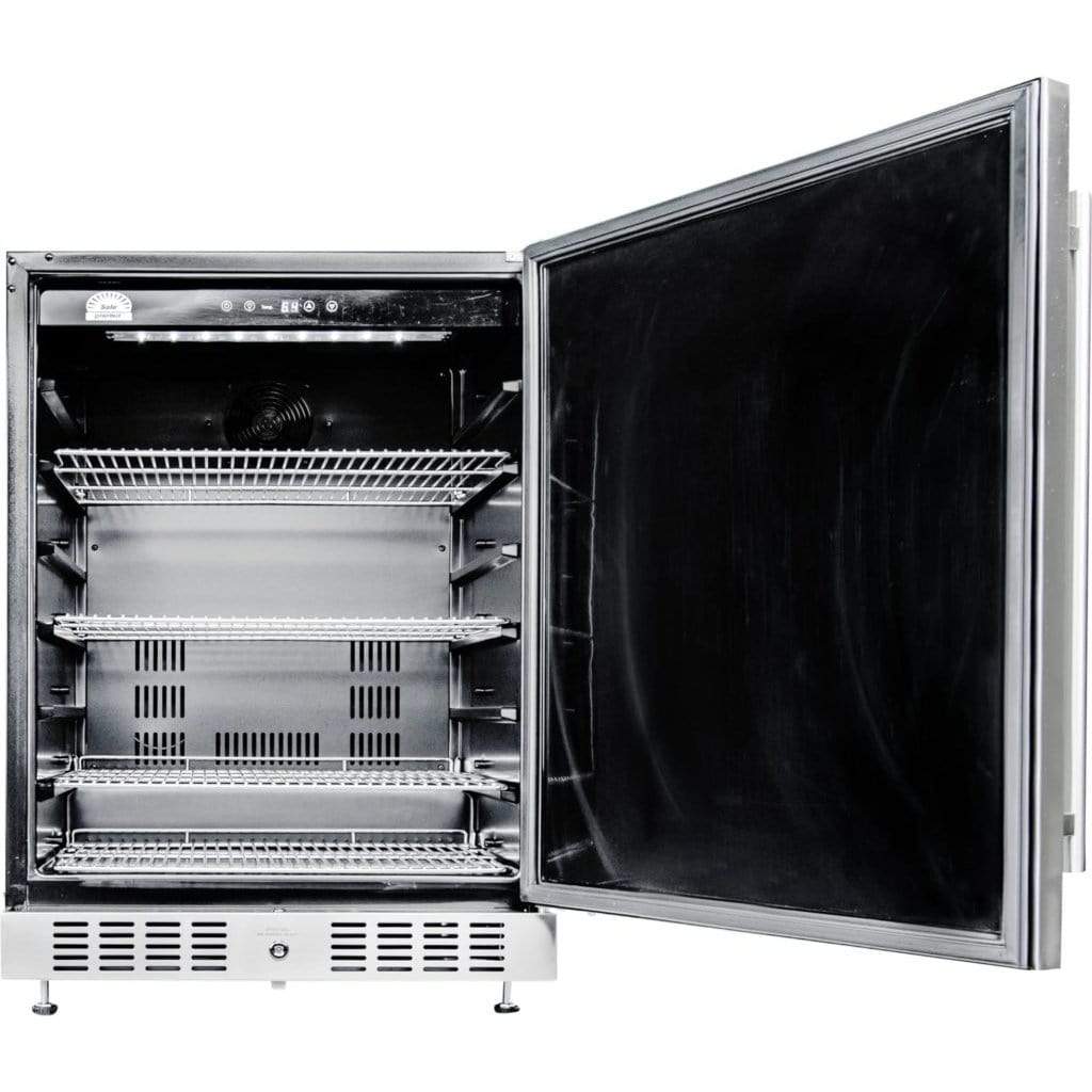 Introducing the Sole Gourmet 24" Outdoor Rated Under Counter Refrigerator - the perfect appliance for outdoor kitchens, patios, and decks. Built with durable stainless steel, this outdoor rated refrigerator can withstand the elements of various weather conditions. Its compact size fits easily in confined spaces and is perfect for outdoor areas with limited space. The spacious interior offers ample room to store food and beverages, ensuring that you never run out of cold drinks or items that need to be stored at a particular temperature. The temperature control feature is easily adjustable, offering flexibility to cater to your specific storage needs. The energy-efficient design of the Sole Gourmet 24" Outdoor Rated Under Counter Refrigerator ensures that it keeps operating costs low for the homeowner. The easy-to-clean interior and exterior eliminate the need for frequent refurbishing. With dimensions of 24 inches wide, the refrigerator is designed to fit neatly into your outdoor kitchen island while maintaining ample space for other kitchen appliances. The contemporary stainless steel finish adds a touch of elegance to your outdoor area and complements the rest of your outdoor kitchen appliances and decor beautifully. Invest in the Sole Gourmet 24" Outdoor Rated Under Counter Refrigerator today, and enjoy the convenience of having chilled drinks and fresh food readily available in your outdoor living space.