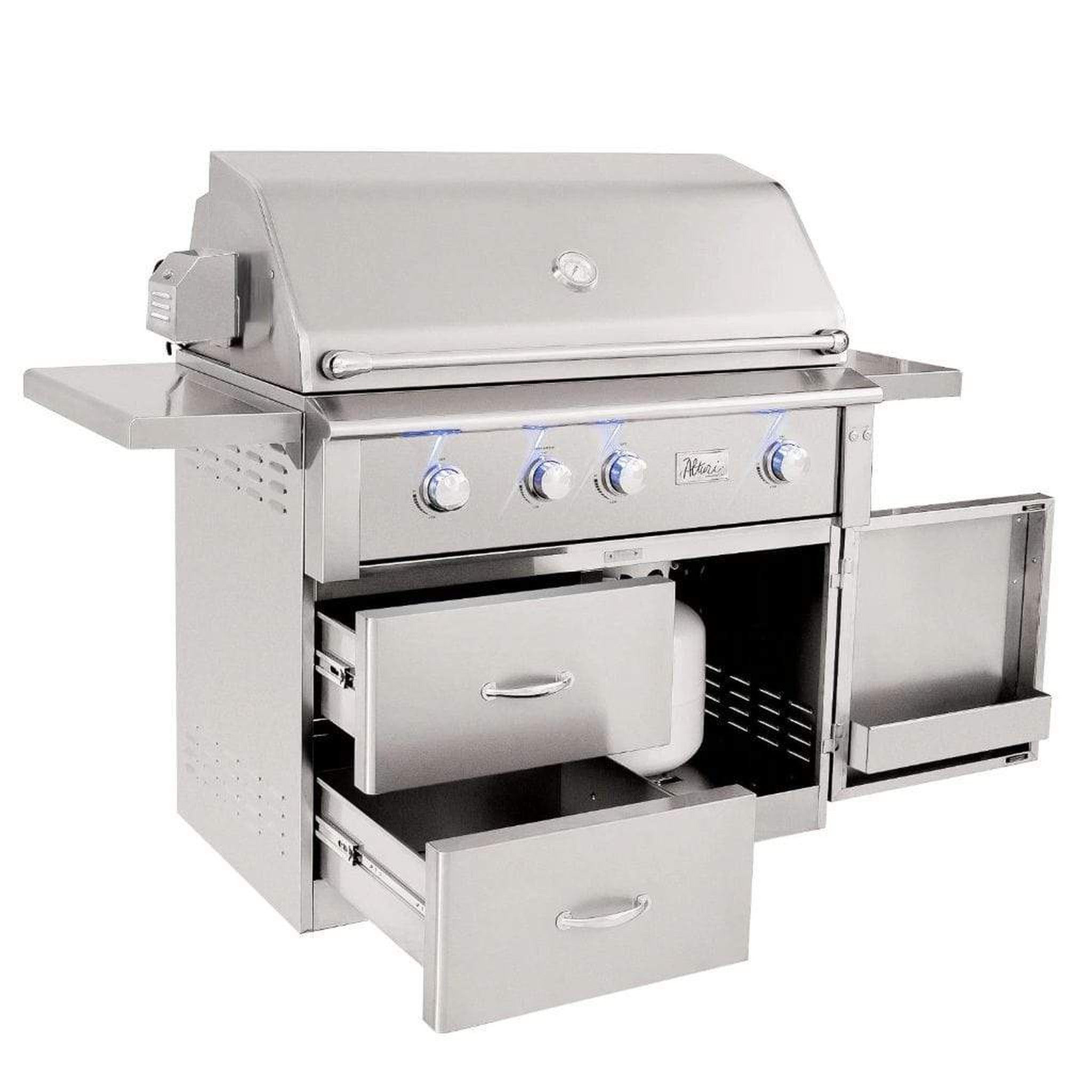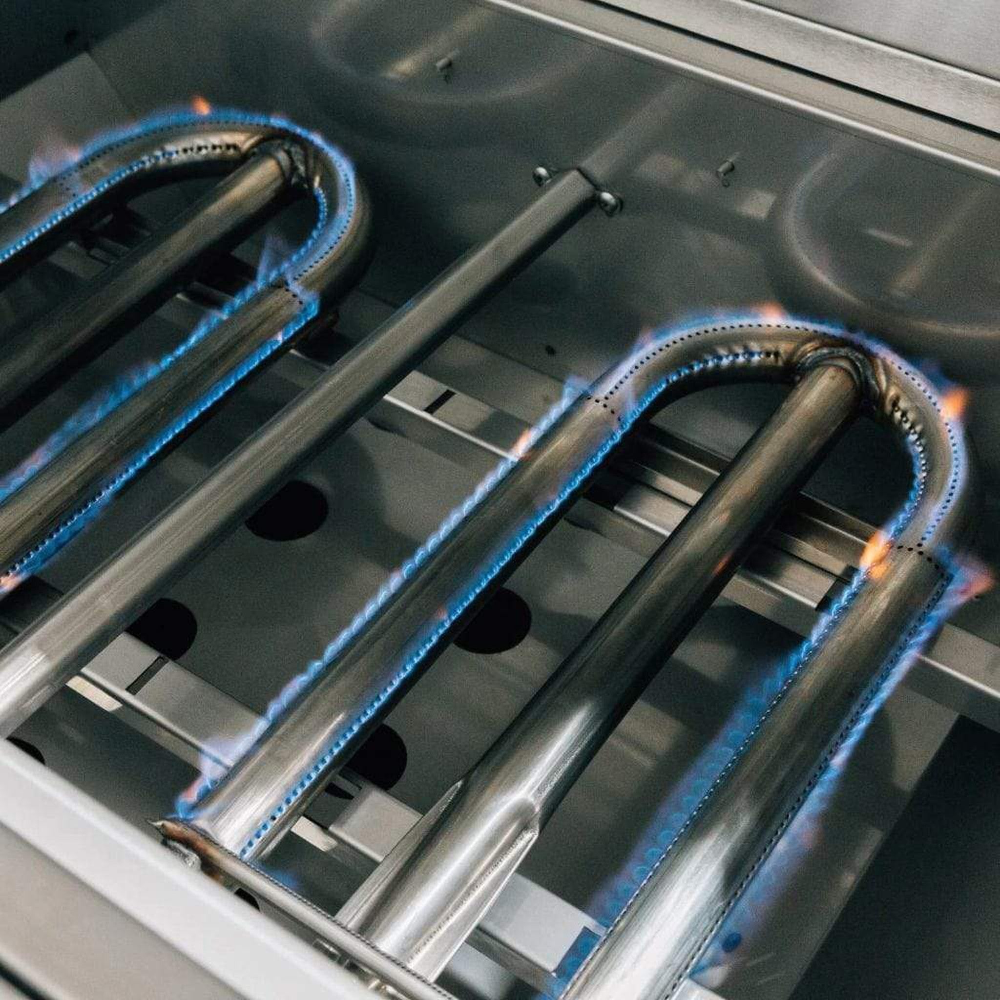 The Alturi Grills ALT42 can be summed up in one word: luxury. Designed with elegance, Made in the USA construction, fueled with power, and loaded with every feature, this grill sets the bar for luxury outdoor cooking. The Alturi ALT42 gas grill is constructed from heavy-duty 304-grade stainless steel for long-lasting performance and durability. This 42-inch built-in gas grill is equipped with three stainless steel U-shaped burners / cast red brass burners rated for 26,000 BTUs each. The 1,100 square inch cooking area is covered with 9mm thick, heavy-duty stainless steel cooking grates. A ceramic briquette tray system sits under the grates, which absorb radiant heat from the burners, ensuring the grill provides even heat across the cooking surface. Stainless steel heat zone separators placed between the burners prevent heat from bleeding over, allowing you to cook foods at different temperatures simultaneously or use the grill in a two-zone setup, with one portion for direct, high heat cooking and the other for cooler indirect cooking.