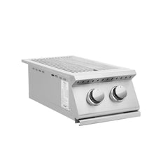 The Summerset Grills (SIZSB2) gas double side burner features two(2) heavy-duty 12,000 BTU polished brass plated burners for enhanced performance and superior heat retention. The Summerset Grills SIZSB2 double side burner is made of 304-grade stainless steel and will provide you years of outdoor cooking enjoyment. The stainless steel removable lid protects the burners when they are not in use and features a curved handle to match other Summerset Grills Products. Front control panel matches exactly to the Summerset Grills Sizzler Series grills creating a streamlined look in your outdoor kitchen. Reliable startup every time, with the Sure-Strike ignition system. If you are looking to create a gourmet outdoor meal complete with soups or side dishes, a built-in side burner is an ideal addition to your outdoor kitchen.