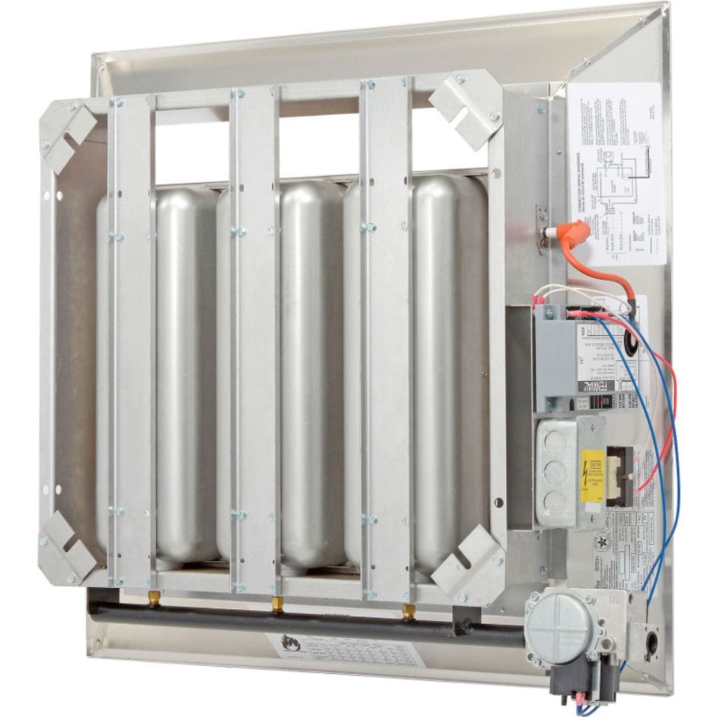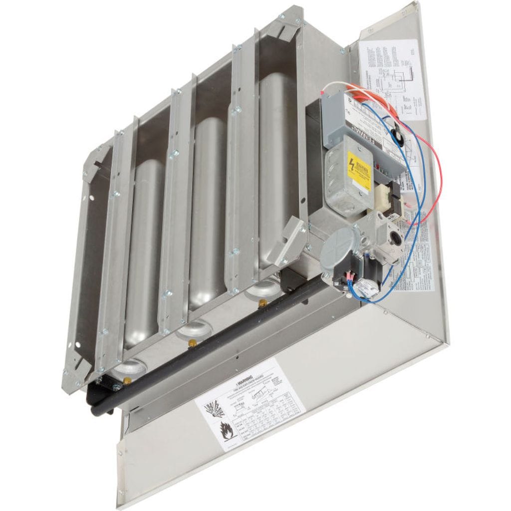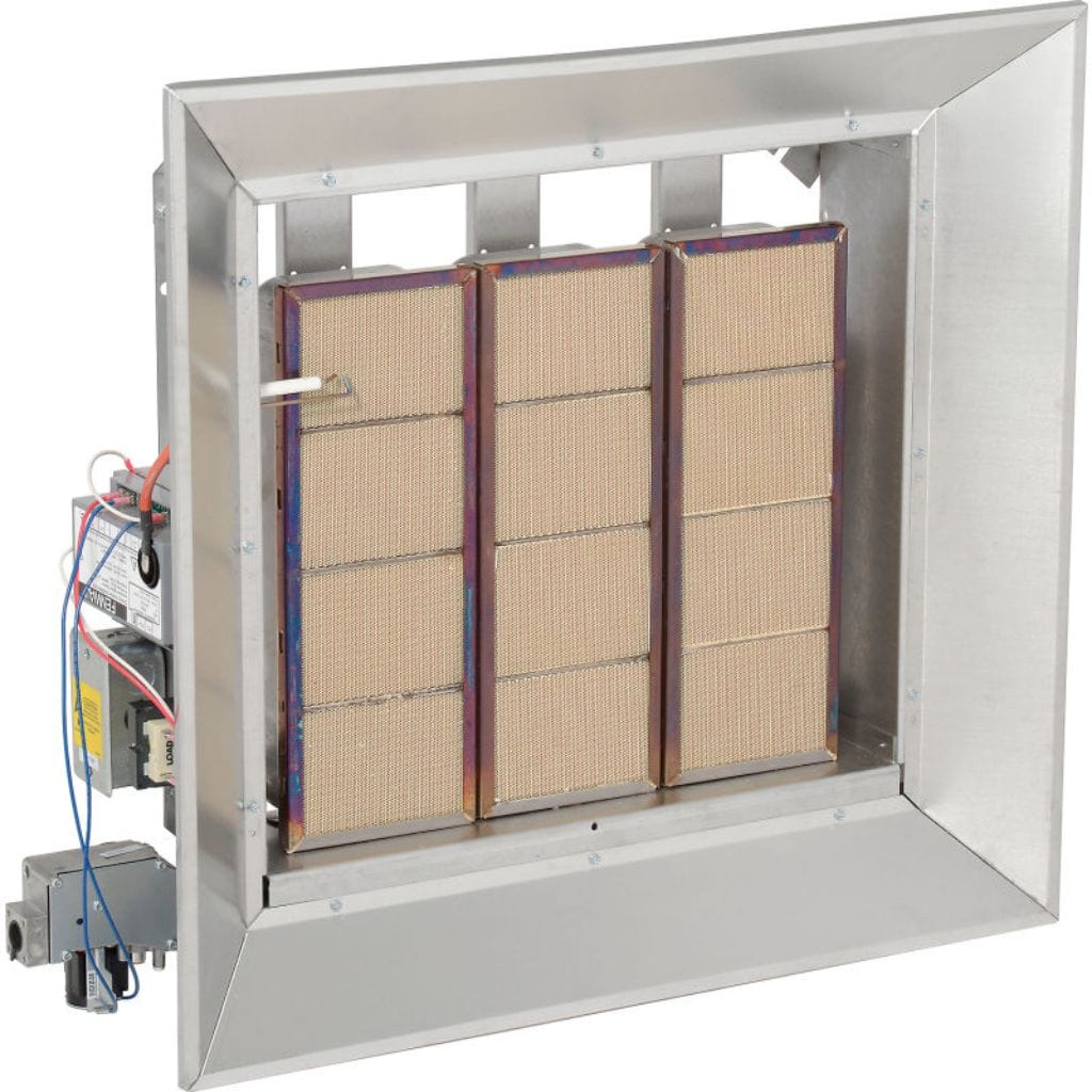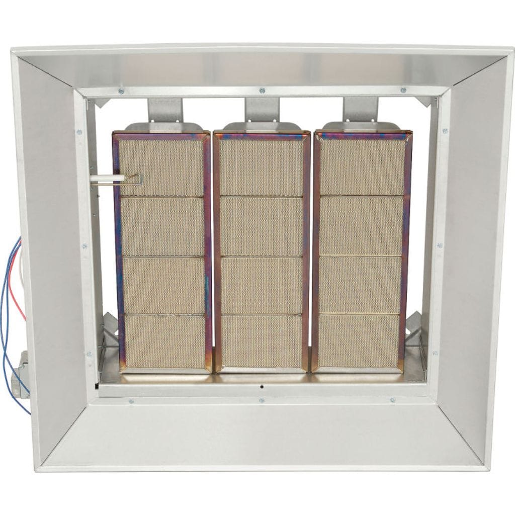 Ideal for spot heating large areas. Dimpled tile assembly offers increased radiant efficiency. Made with corrosion resistant aluminized steel. Aluminum reflectors maximize radiant output. Millivolt Standing Pilot Heaters do not require electrical power and operate with 100% gas shut-off safety control. Allows horizontal or angle mounting. Includes protective radiant screen. CSA certified.
