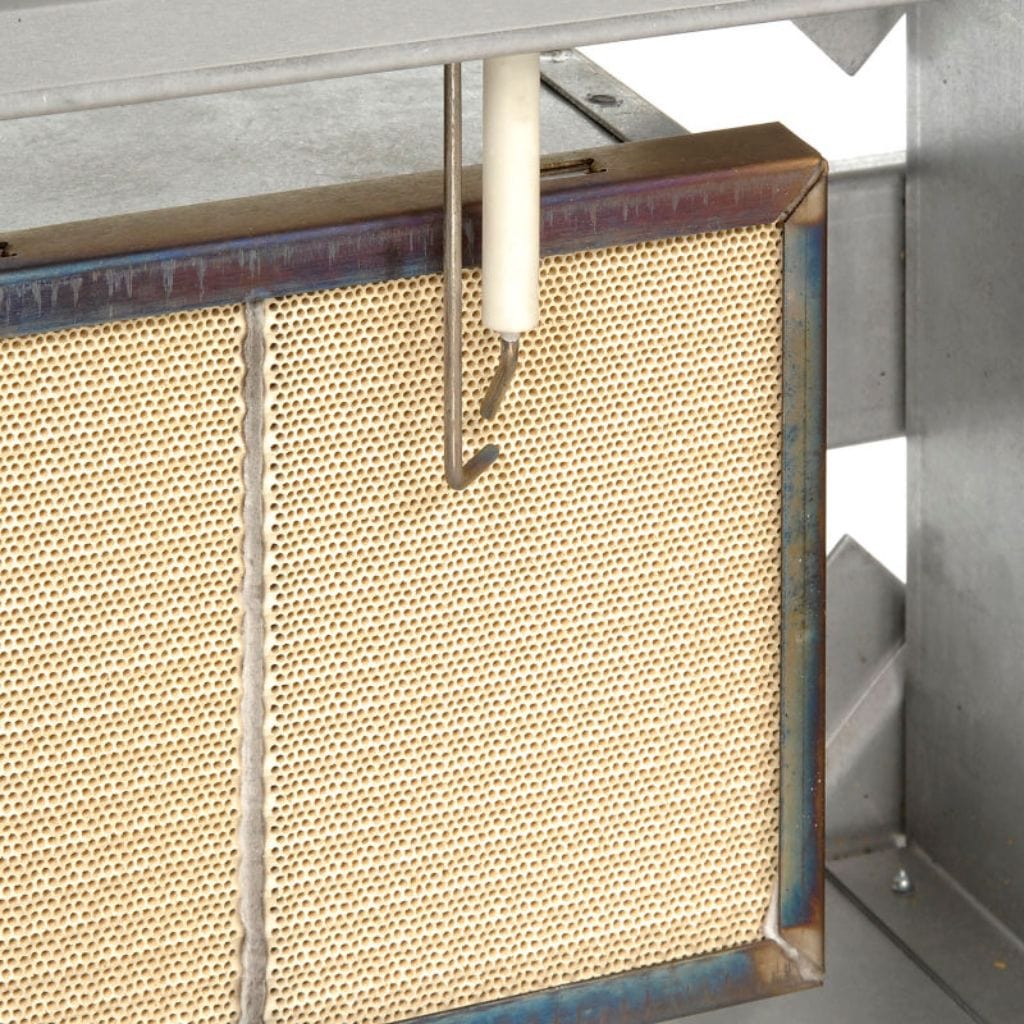 Ideal for spot heating large areas. Dimpled tile assembly offers increased radiant efficiency. Made with corrosion resistant aluminized steel. Aluminum reflectors maximize radiant output. Millivolt Standing Pilot Heaters do not require electrical power and operate with 100% gas shut-off safety control. Allows horizontal or angle mounting. Includes protective radiant screen. CSA certified. This product has limited warranty of 1 year.