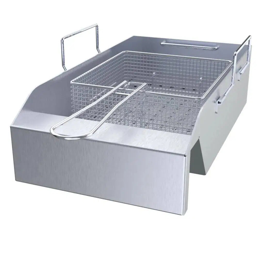 Upgrade your outdoor cooking game with the Steamer/Fryer/Boiler, featuring a stainless-steel reservoir and basket for heating oil for deep-fat frying wings, fries, tempura, and poppers right over your Sunstone, Ruby, or Companion Pro Grill, inset in any of our grills by removing a single cooking grate. The sturdy material ensures it will not warp in high heat usage and all 304 Stainless Steel constructions resist rust and corrosion. The Steamer/Fryer/Boiler is a multi-functional design that can be used as a steamer, deep fryer, or boiler – the choice is yours. Use the included perforated tray for steaming vegetables or other food, and load up the commercial-sized fryer basket for deep-fried chicken.