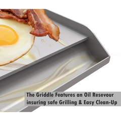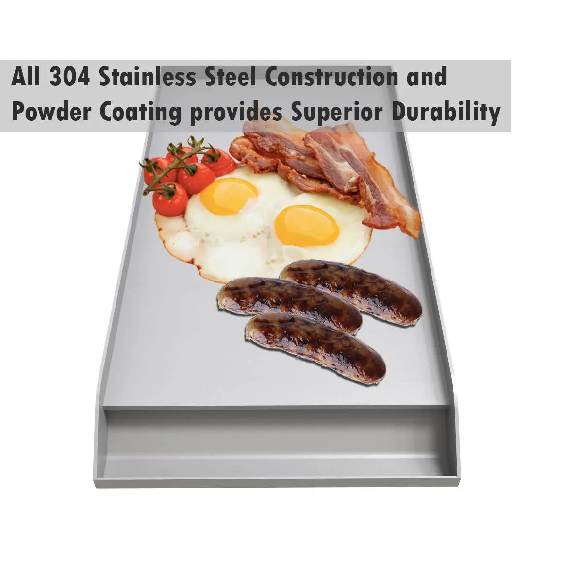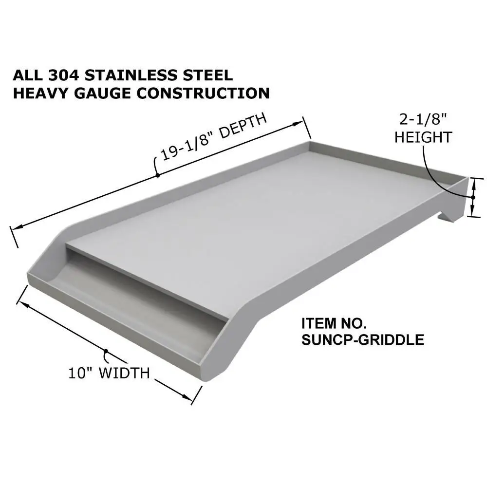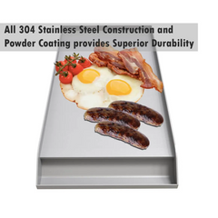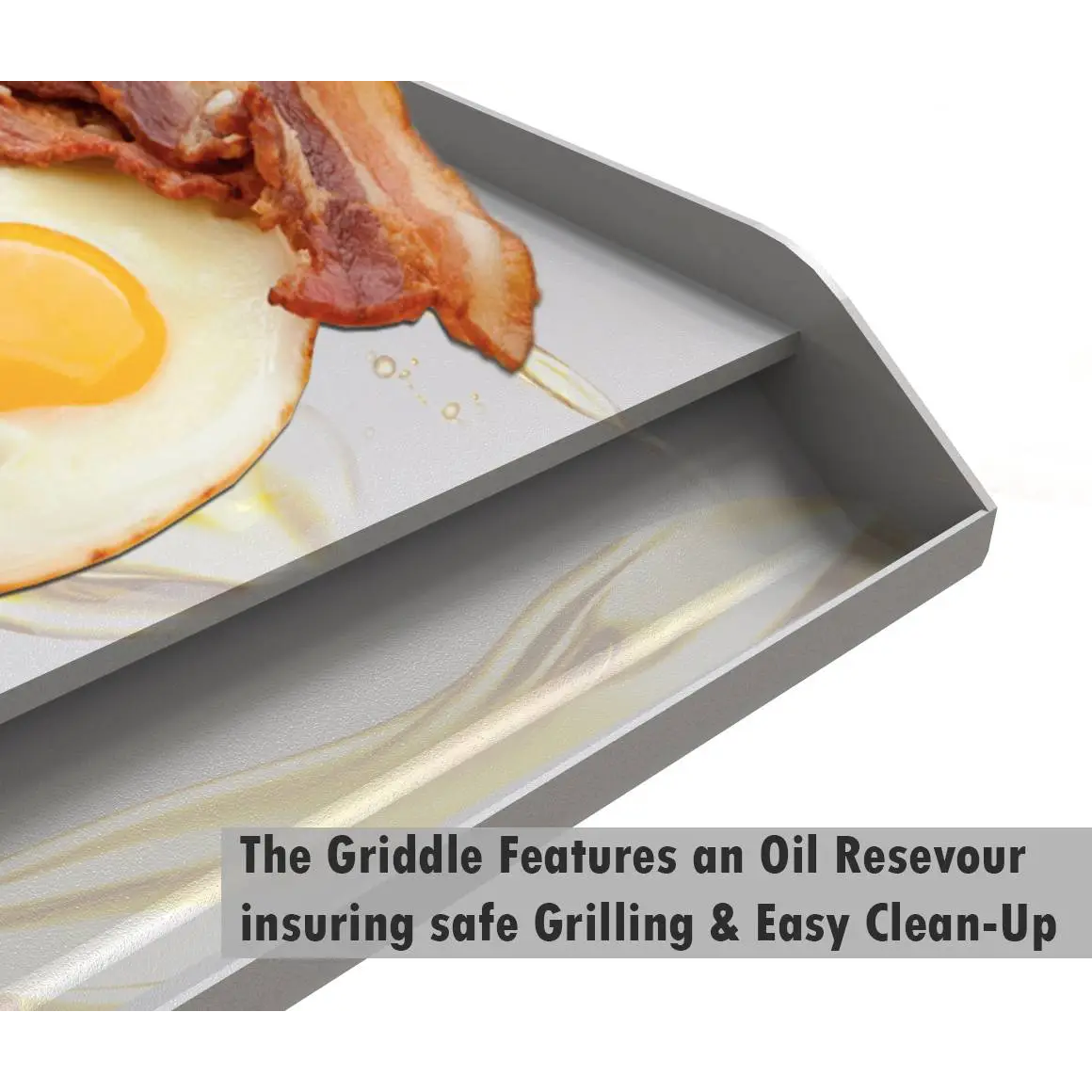 Upgrade your outdoor cooking game with the 304 Stainless Steel Powder Coated Griddle for BBQ Grills, featuring extremely heavy-duty construction with extra powder coating exterior finish ensuring long-lasting durability. Our griddle is perfect for grilling pancakes, fried eggs, hot dogs, bacon, asparagus, and other vegetables. The 304 Stainless Steel Powder Coated Griddle can be easily placed as an insert with any Sunstone or Ruby Grill or on top of cooking grates with any other grill available in the market. Convert your conventional gas grill into a multi-configurable griddle with superior versatility, placing it as singular or in multiples.