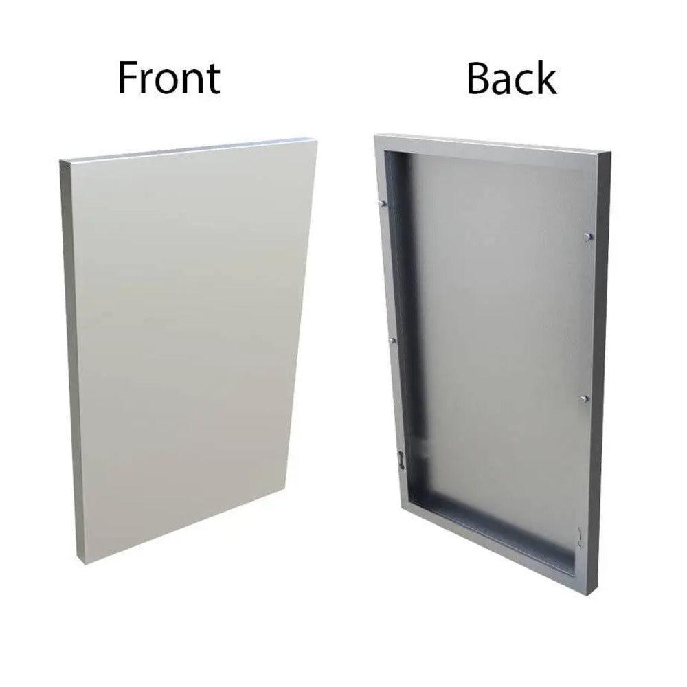 The Sunstone 21 In. Height Upper Wall Cabinet End Panel adds the finishing touch to your new Wall Cabinet Group with all 304 Stainless Steel matching #4 brushed finish. The End Panel covers up any unsightly internal layer cabinet panels, screw heads, and utility access ports creating a finished appearance. The Panel is measured 1 In. Thick x 13 In. Width x 21 In. Height, so be sure to add this additional 1 In. to either left or right side of your overall Cabinet Island Width. In addition this End Panel is recommended for use between Two Adjacent Cabinets inside a Sink Nook to cover the lower portion of the Full Height Cabinet base. The panel is easily installed with Pin-Locks, simply Lift and Drop the Panel onto the Side of Cabinet; be sure the End Panel is installed before your Upper Wall Cabinets are Installed.
