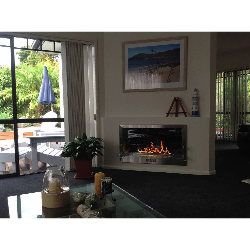 The Bio Flame Firebox is self-contained which makes it quick and easy to install on an indoor or outdoor wall. The 38.6” Ethanol Fireplace comes with a patented heat isolation chamber to ensure the safety of your home and requires no permanent or expensive connections – no chimneys, gas lines, venting, electricity or flues required. Made entirely out of 304 grade stainless steel and offered with an industry leading 5 year warranty.